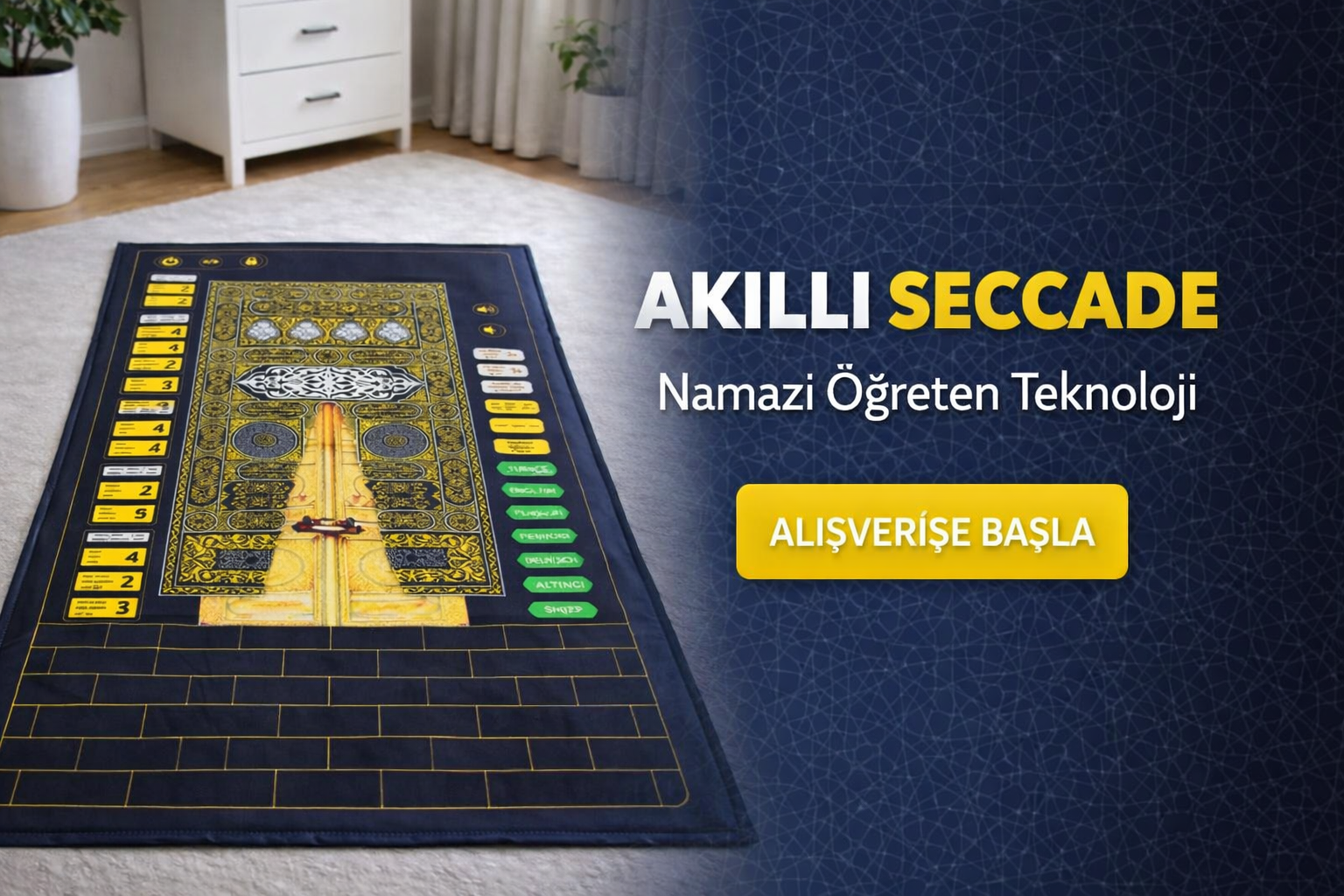 Bu ürün klasik seccadeler gibi sadece namaz kılınan bir zemin değildir. Sesli yönlendirme ile namazı adım adım öğretir, sure ve duaları okur ve özellikle yeni başlayanlar için öğrenmeyi kolaylaştırır. Normal seccadeler pasiftir; bu seccade rehberlik eder.